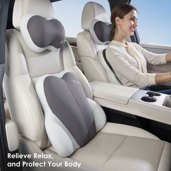 This ergonomic kit is designed to reduce discomfort in the lower back, tailbone, sciatic nerve, and neck, making long periods of sitting or driving more comfortable.